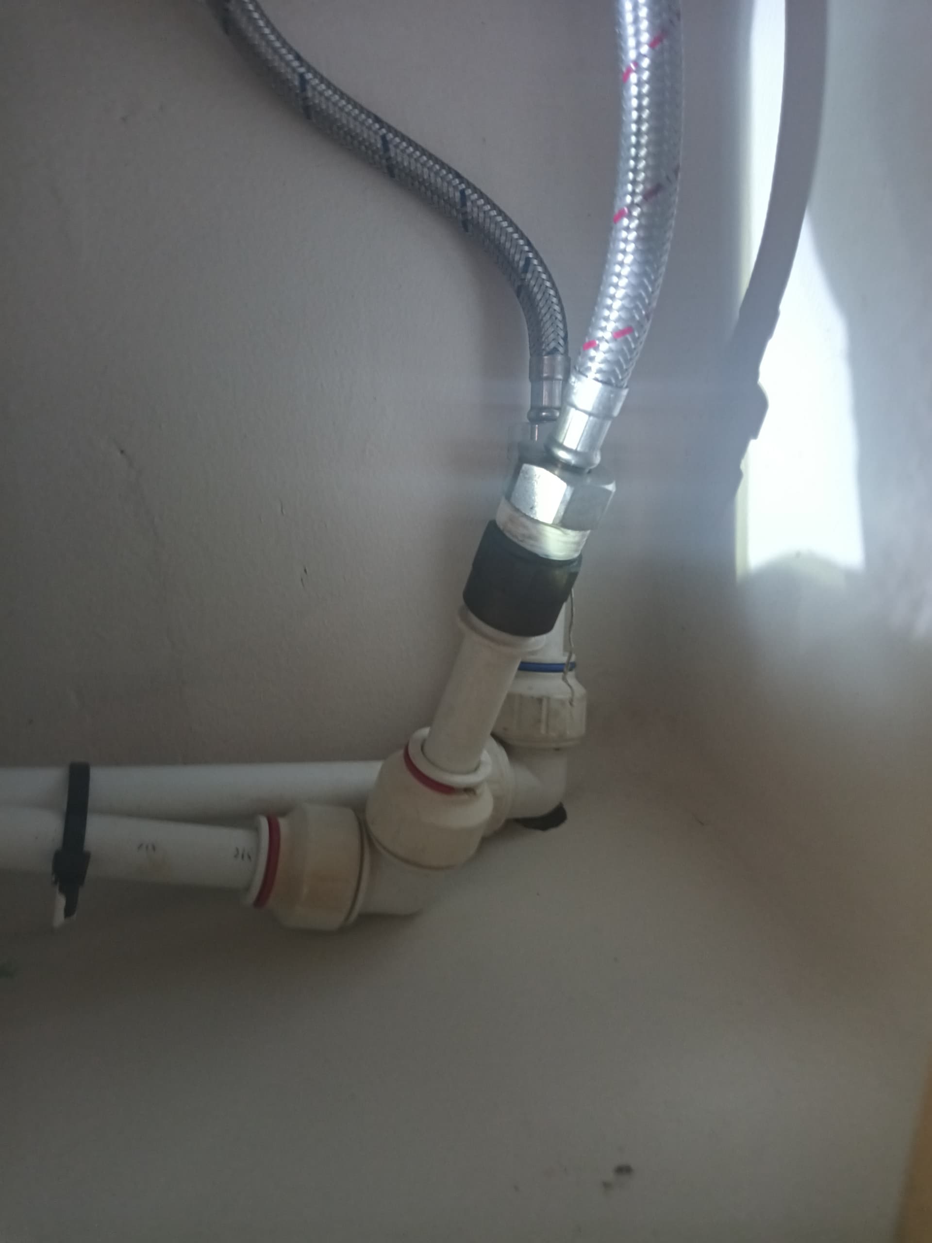 I kept the starboard fresh water feed, so I can supply the starboard pump with fresh water from the tank in case the port pump fails.